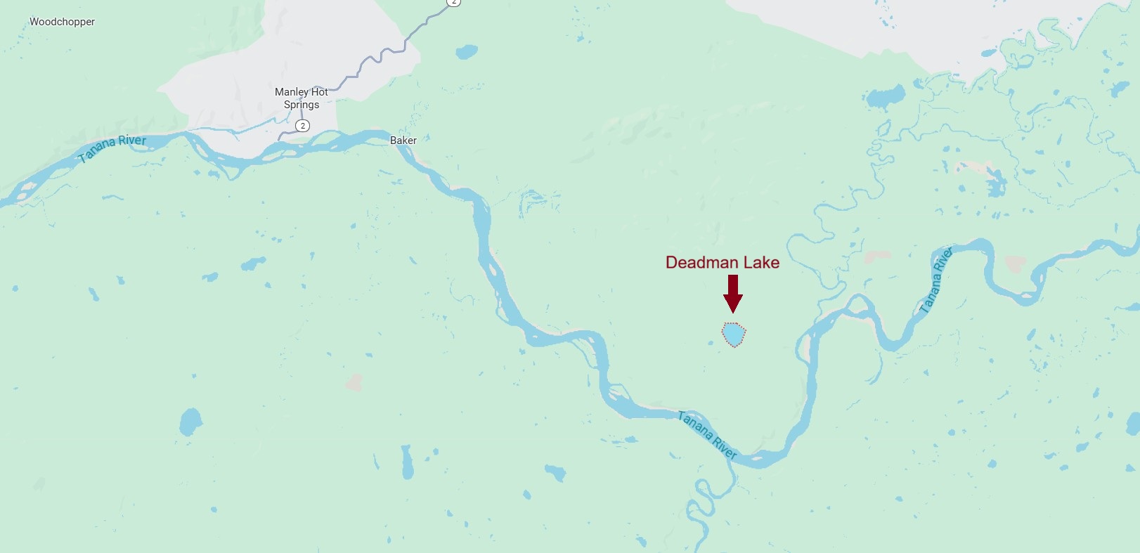 Directions: Deadman Lake is located approx. 22 miles SE of Manley Hot Springs; see maps.