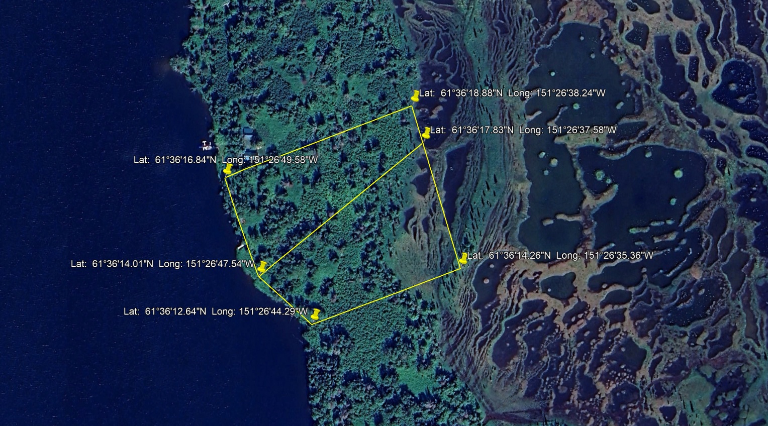 Buildings: 96 sf Cabin w/half loft built 2014. Painted plywood exterior; metal roof. Floating modular dock (22’ in length).